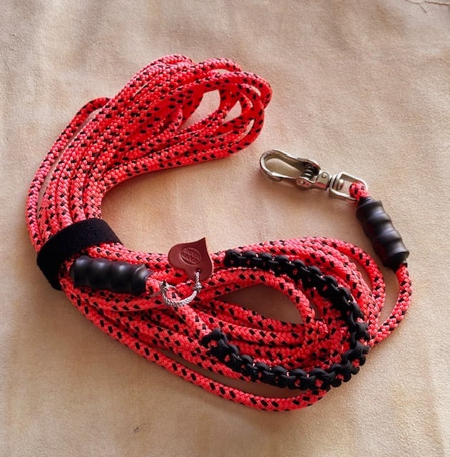 当店のプライベート・ブランド、タフイナフのロングリードは、丈夫で本格的なデザインが特徴。ドッグトレーナーからも高い評価を頂いており、たくさんの注文を頂戴しています。安全第一主義に基づき、厳選した高品質部品を使用し、過剰な規格で製造されたタフイナフロングリードは、強度と耐久力が圧倒的です。マリン・グレードのオーストリア産ロープを使用し、丸形のマリンロープで、取り回し易いデザインとなっております。また、編み込みパラコードのハンドルは握りやすく、手にフィットする設計になっています。是非、当店のタフイナフロングリードで安心して愛犬との散歩を楽しんでください。